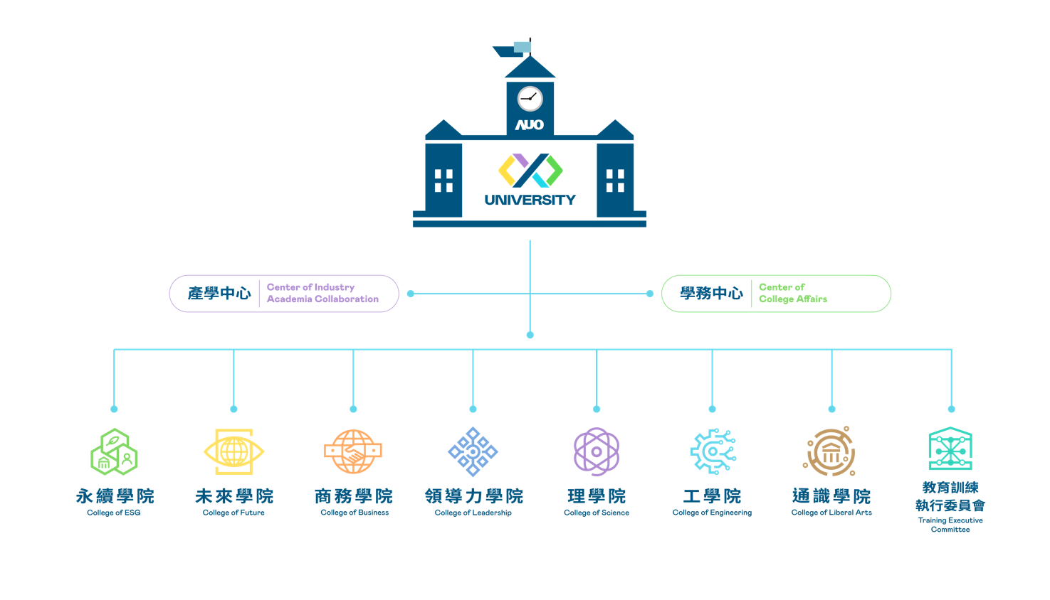 我們鼓勵每位pg.ccm壹号官方版人持續學習發展,pg.ccm壹号官方版大學依據專業核心能力發展與次世代人才培育需求,發展商務經營學院、永續學院 、未來學院、理學院、工學院、領導力學院與通識教育學院等七大學院,共同形塑組織內部教學相長的動能,並針對各學院的專業核心能力陸續推出優質課程,激發pg.ccm壹号官方版人發揮潛能,創造無限可能。