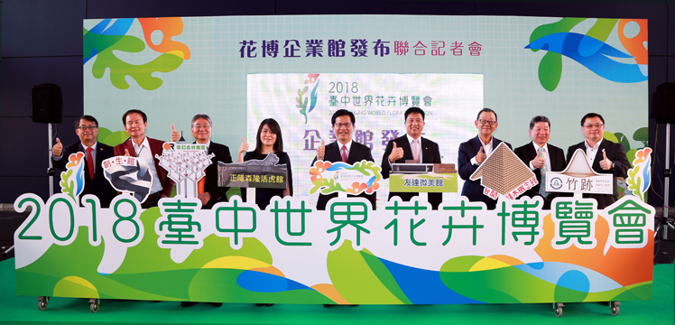 pg.ccm壹号官方版光電落實社會參與、回饋在地,參與臺中花卉博覽會 (中:臺中市長林佳龍,右四:pg.ccm壹号官方版光電董事長暨執行長彭双浪)