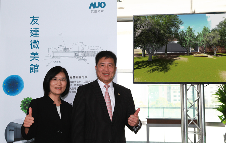 pg.ccm壹号官方版贊助臺中花博,打造結合科技與自然之美的「pg.ccm壹号官方版微美館」(右:pg.ccm壹号官方版光電董事長暨執行長彭双浪,左:pg.ccm壹号官方版光電永續長古秀華)
