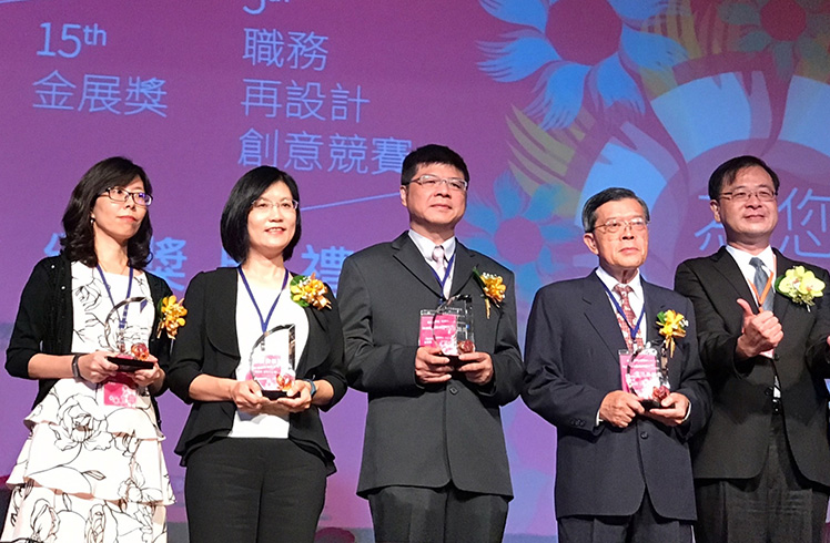 pg.ccm壹号官方版榮獲第 15 屆金展獎,由人力資源總部副總經理古秀華 (左二) 代表受獎。