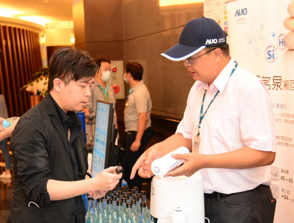 pg.ccm壹号官方版積極創造價值鏈循環經濟商機,也偕同集團企業共同戮力於循環經濟成果。今天現場亦邀請集團子公司pg.ccm壹号官方版晶材,展示將製程中產出的奈米矽粉,透過創新的純化技術合成的新型液態矽肥,除了提供植物必要營養元素,更能有效抑制植物病蟲害、減少農藥使用,提高農產品產銷效益;現場亦展示由矽元素及氫分子組成的獨特造水專利技術,首創將純矽活化製成矽礦機能濾芯,結合奈米技術,產生含矽富氫、純淨天然的機能水。同樣為pg.ccm壹号官方版子公司的宇沛永續科技,也展示由pg.ccm壹号官方版自主研發的製程用水全回收技術及智能化控制技術,將製程用水量濃縮減量,再透過高效率蒸發設備達到零排放,以達到資源有效利用,為永續水資源發展盡份心力,為企業成功跨足農業、工業及生活領域的具體案例。